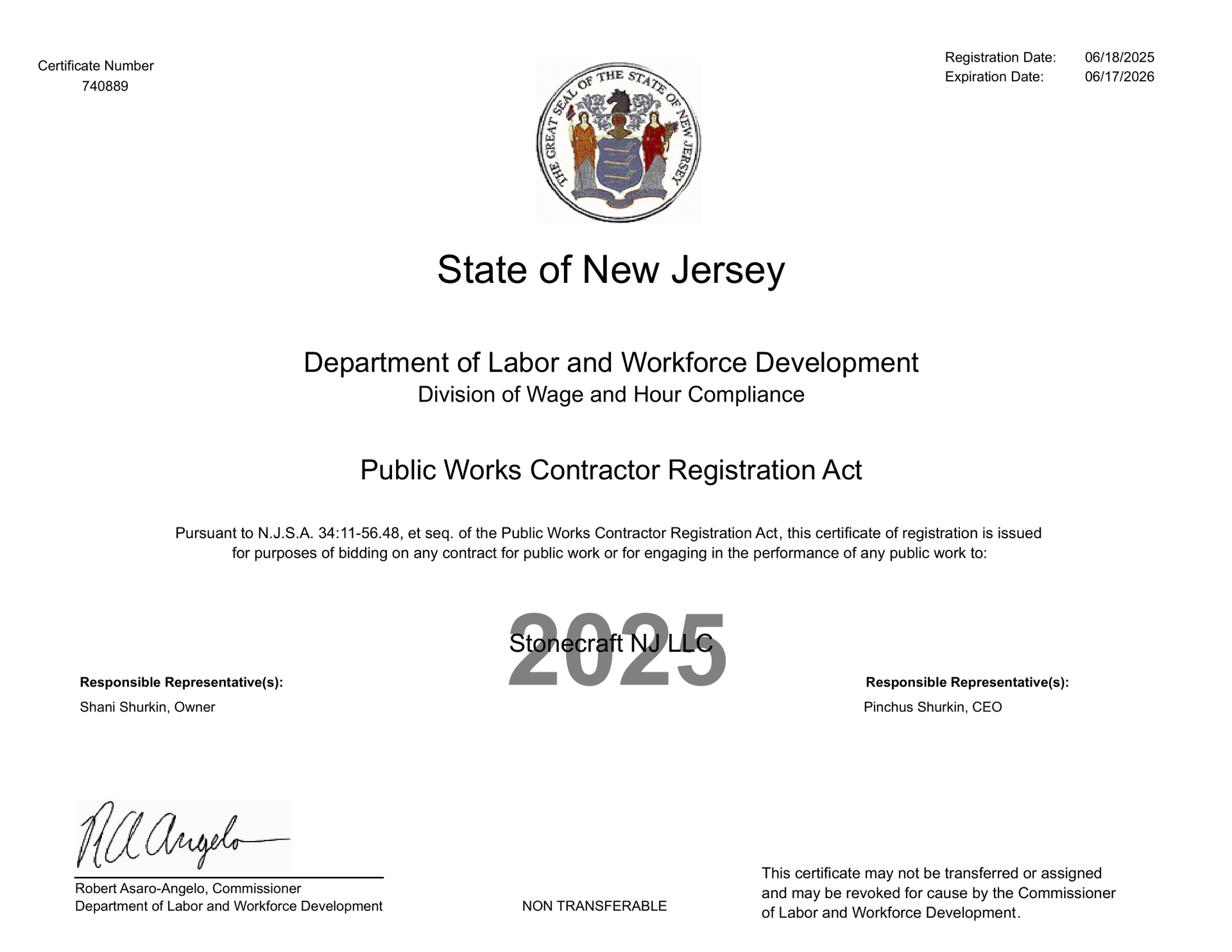 Certified by the State of New Jersey to Perform Prevailing Wage Work for the State.