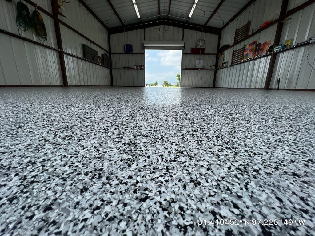 Small surface scratches or chips can be addressed by lightly sanding the affected area, cleaning it thoroughly, and applying a thin polyaspartic touch-up coat. For flake broadcasts, matching decorative chips restores visual continuity. Prompt repairs prevent localized wear from undermining the overall coating integrity.